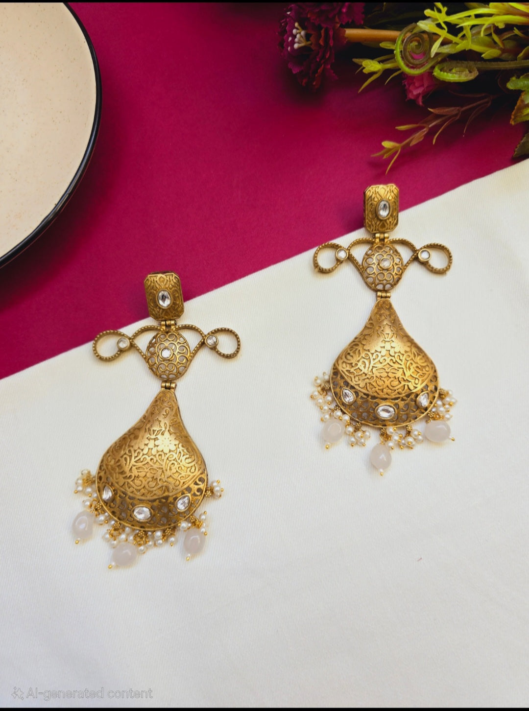 Rajwadi collection which is made in pure brass with matte gold polish , with high quality monalisha stones , doublette stones , Carving stones , original pearls , crystal beads , camp stones and much more
